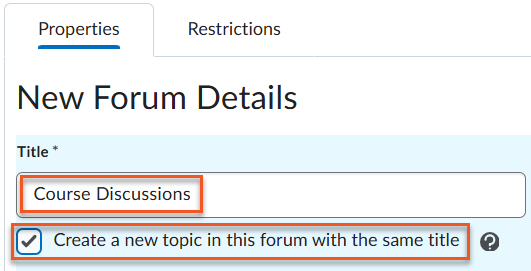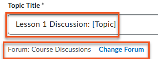 1. Enter a title and check the box to cre­ate a top­ic with the same title if you would like a top­ic cre­at­ed. Include a descrip­tion if desired.