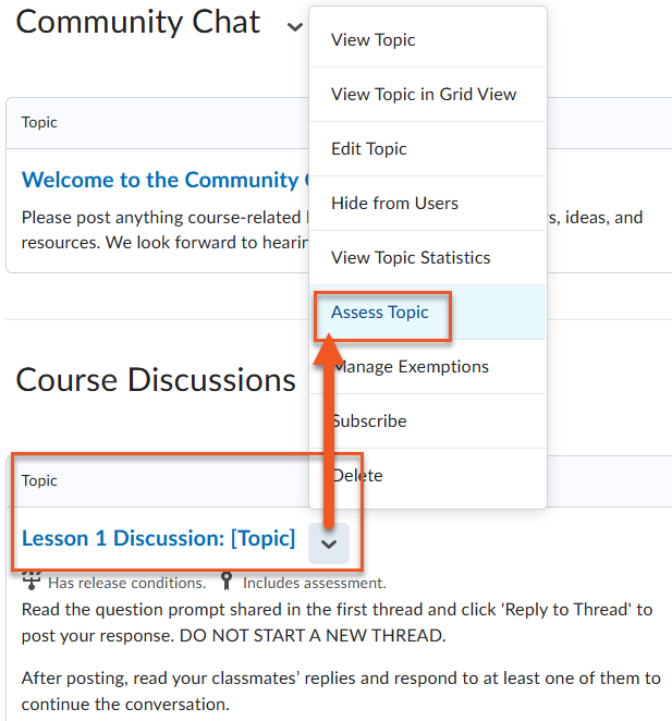 Use one of the two methods below to grade discussion posts.