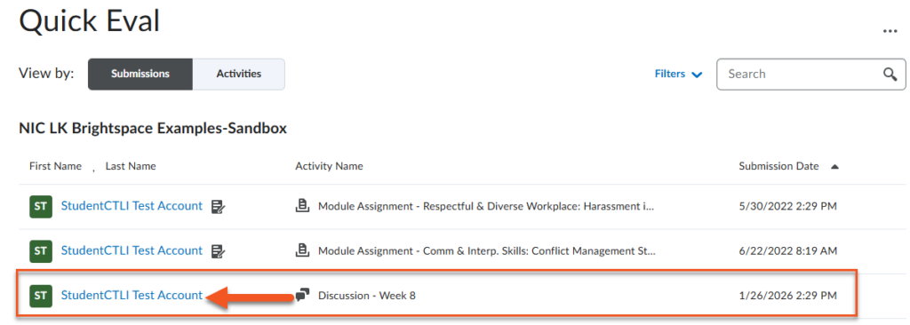 You can grade discussions inline using the Discussions tool or the Quick Eval tool, both tools allow you to evaluate individual posts, assign scores, and provide written or audio feedback. Grades can be linked directly to the gradebook, ensuring student scores and feedback are recorded and released efficiently.