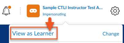 Note: The View as Learn­er option in Bright­space pro­vides a gen­er­al pre­view of the stu­dent expe­ri­ence, but some fea­tures (such as release con­di­tions, grade vis­i­bil­i­ty, or activ­i­ty access) may not dis­play accu­rate­ly. For a ful­ly accu­rate stu­dent view, request that a test stu­dent account be added to your course by sub­mit­ting a ser­vice desk tick­et.