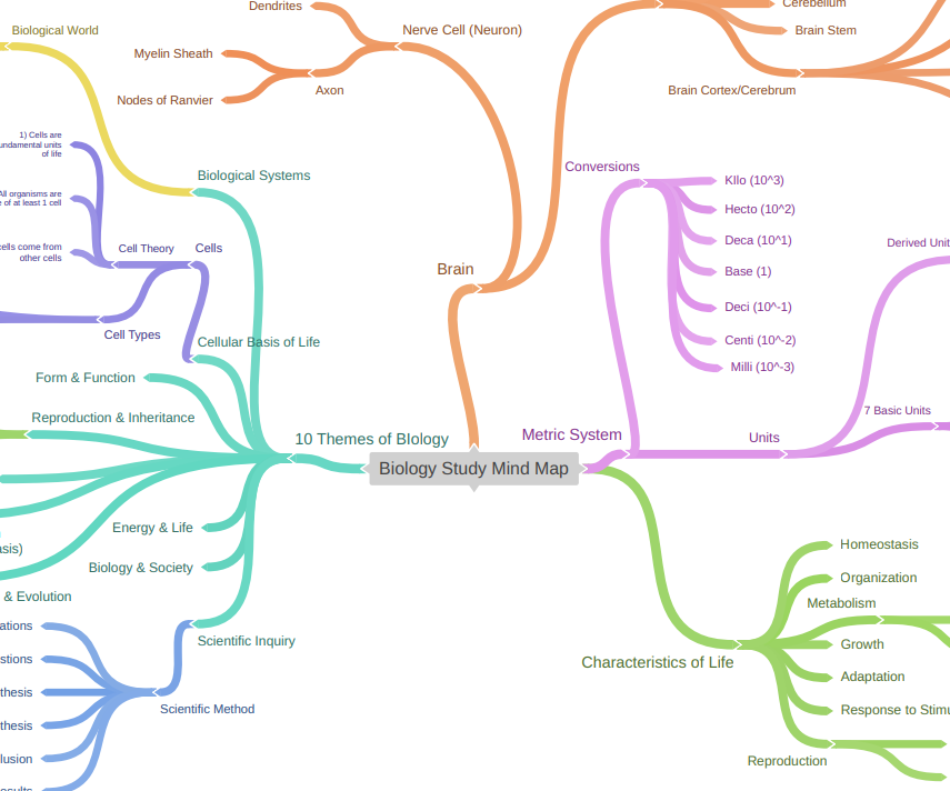 Below is an example of a partial mind map for a biology course. This can be created quickly and free with class collaboration with many different online platforms. This one is a Public Diagram that can be used as a template for any topic provided by Coggle.